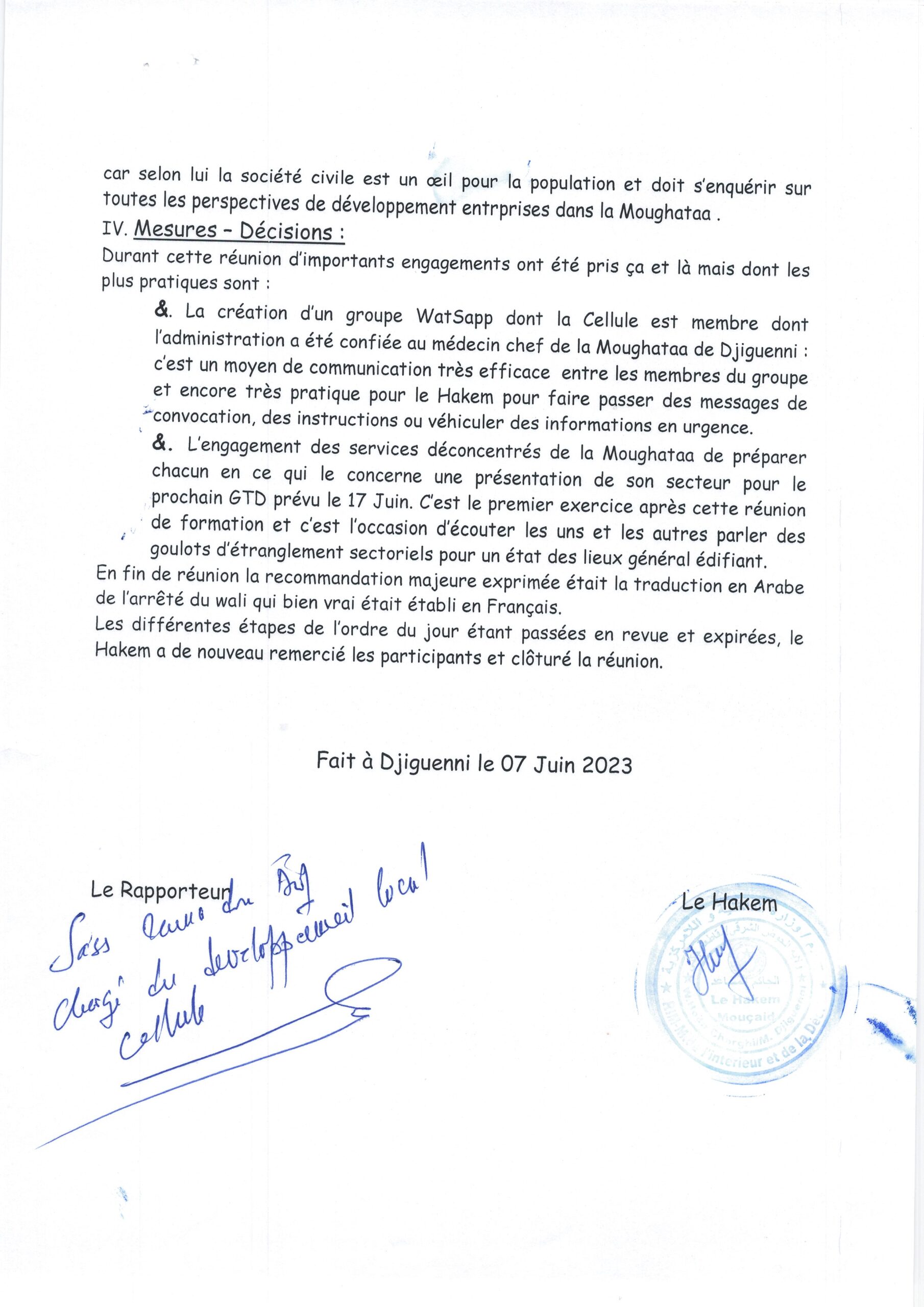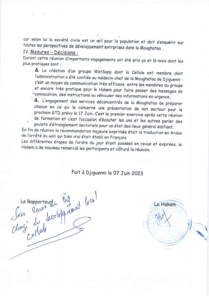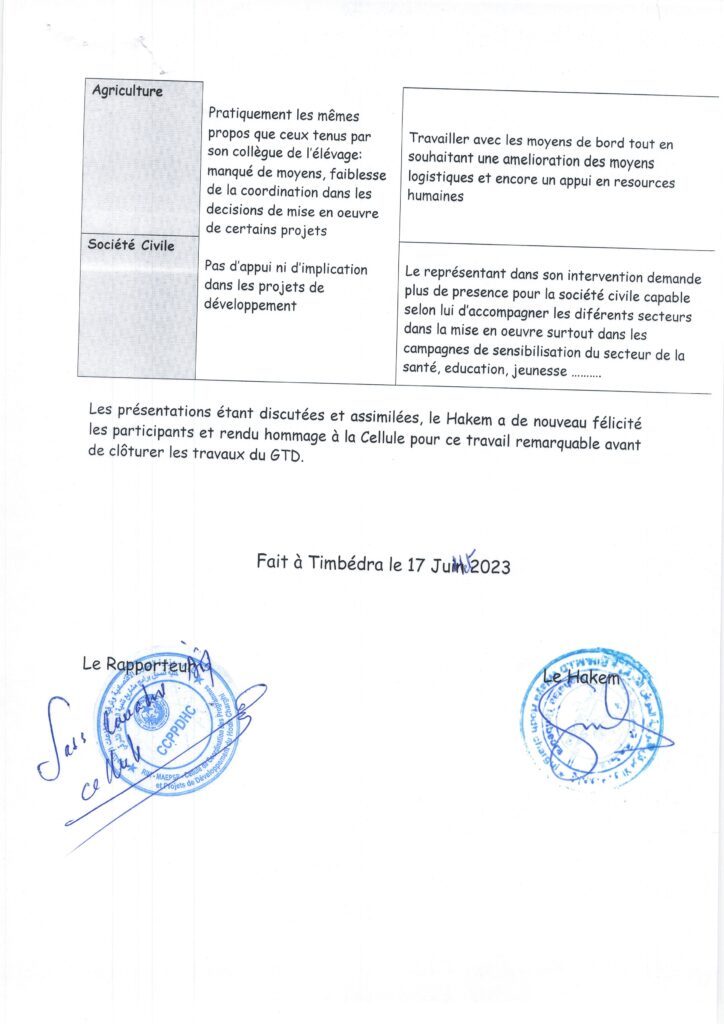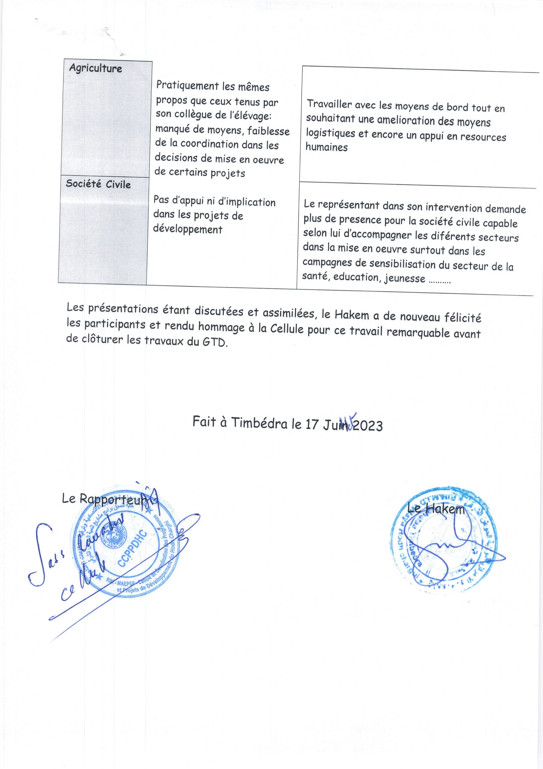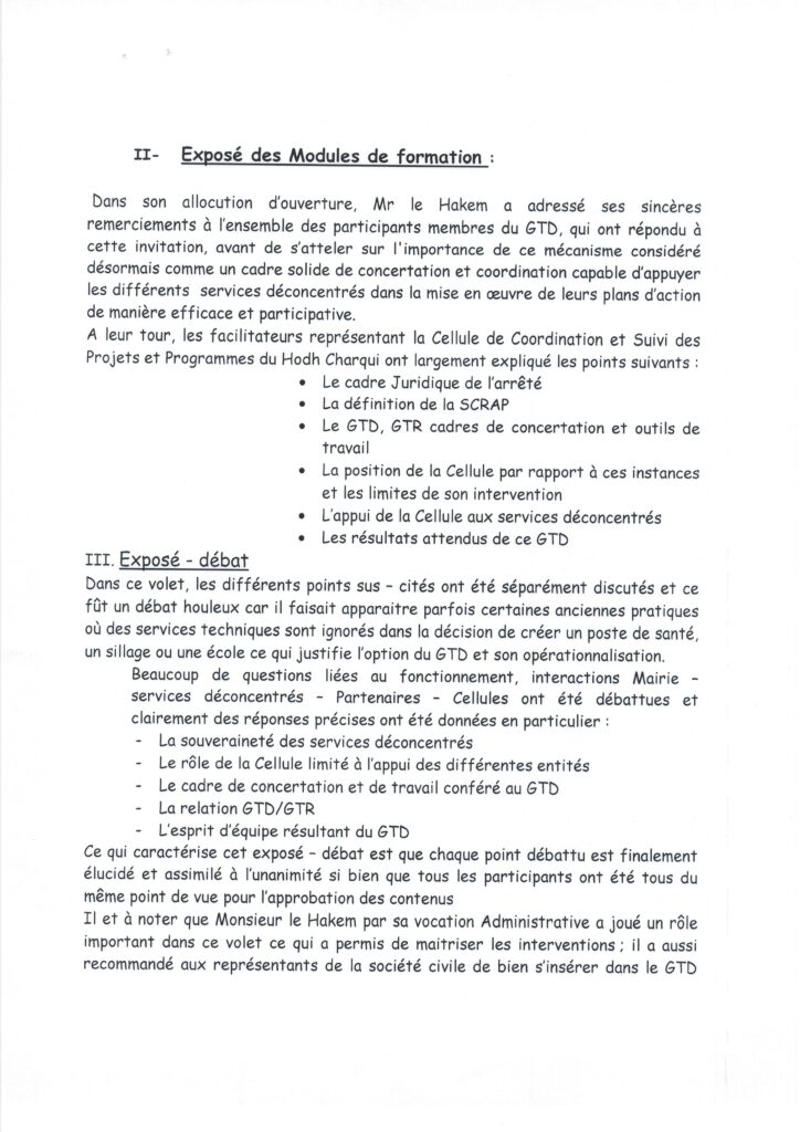 PV des réunions de Groupe de travail Départemental GTD , Groupe de Travail Régional GTR et Groupe de Travail Sectoriel GTS qui se sont tenus dans les différentes Moughataas de la Wilaya du Hodh Charqui.